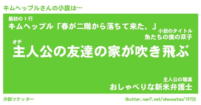 | 男性向けラノベタイトル風あだ名 | 『キムヘッブルの憂鬱』 |