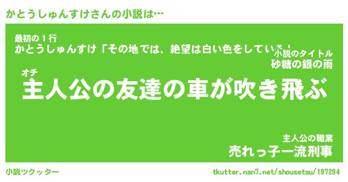 | ツイッター | かとうしゅんすけさんのツイッターID『dendenmushi_nyan』 |