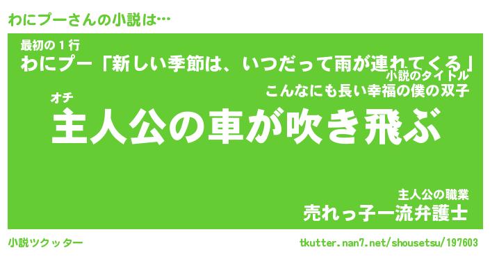 | 男性向けラノベタイトル風あだ名 | 『わにプーの憂鬱』 |