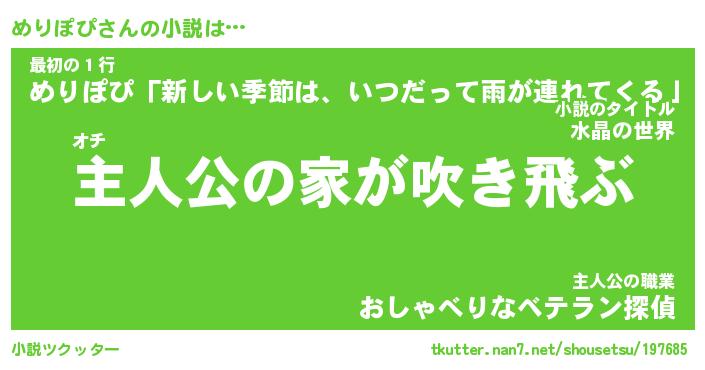 | 男性向けラノベタイトル風あだ名 | 『めりぽぴの憂鬱』 |