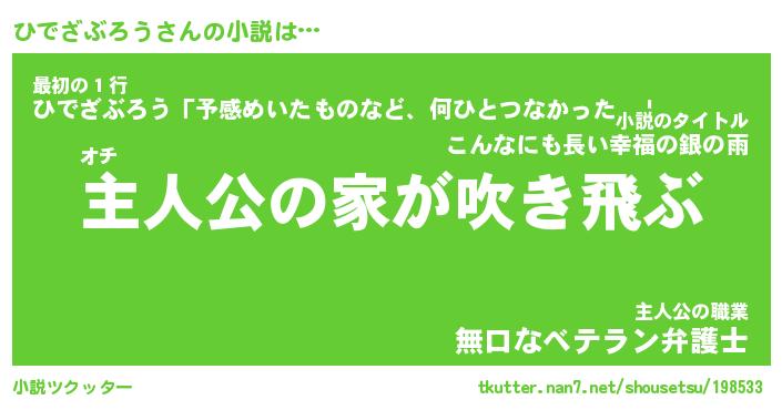 | 魚たちの銀の雨WW …「ケモノ」 | 10月27日 05:47 |