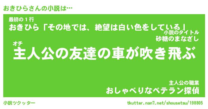 | ツイッター | おきひらさんのツイッターID『dendenmushi_idle』 |