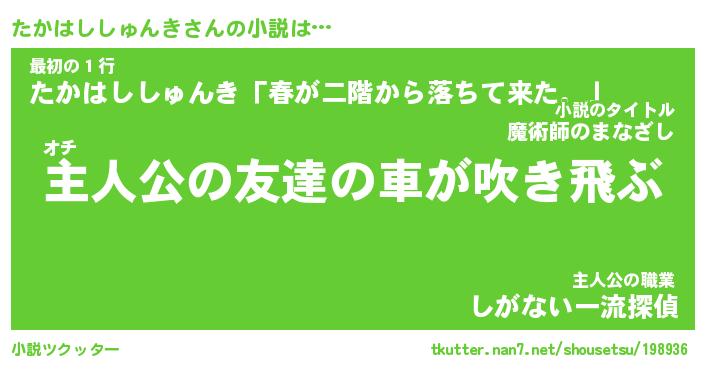 | 男性向けラノベタイトル風あだ名 | 『タカハシシュンキアートオンライン』 |