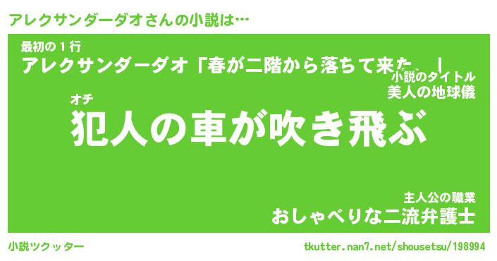| 男性向けラノベタイトル風あだ名 | 『アレクサンダーダオアートオンライン』 |