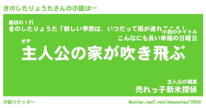 | 男性向けラノベタイトル風あだ名 | 『きのしたりょうたの憂鬱』 |