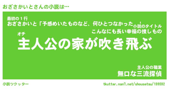 | 男性向けラノベタイトル風あだ名 | 『おざさかいとの憂鬱』 |