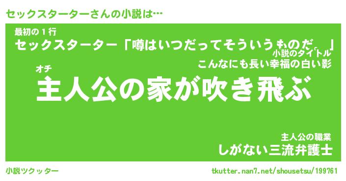 | 男性向けラノベタイトル風あだ名 | 『セックスターターの憂鬱』 |