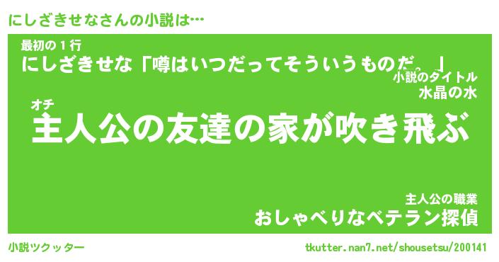 | 男性向けラノベタイトル風あだ名 | 『にしざきせなの憂鬱』 |