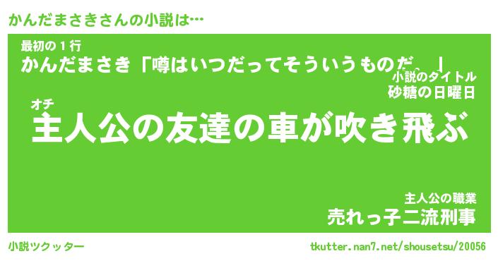 | 男性向けラノベタイトル風あだ名 | 『カンダマサキアートオンライン』 |