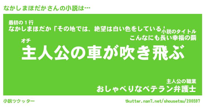 | 男性向けラノベタイトル風あだ名 | 『なかしまほだかの憂鬱』 |