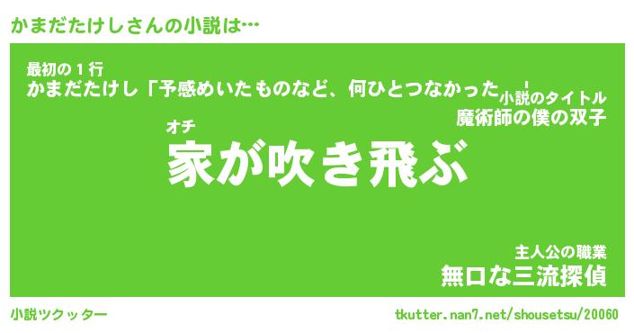 | 男性向けラノベタイトル風あだ名 | 『かまだたけしの憂鬱』 |