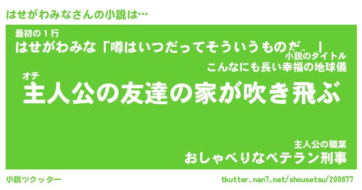 | 男性向けラノベタイトル風あだ名 | 『ハセガワミナアートオンライン』 |