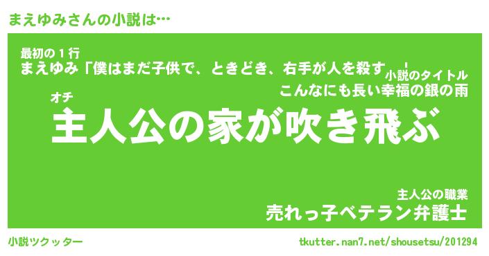 | 男性向けラノベタイトル風あだ名 | 『まえゆみの憂鬱』 |