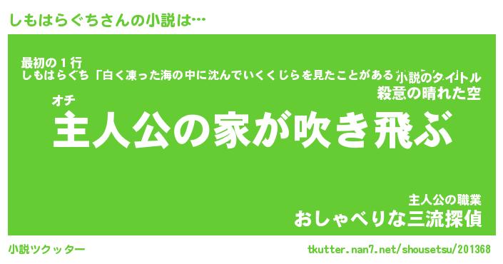 | 男性向けラノベタイトル風あだ名 | 『しもはらぐちの憂鬱』 |