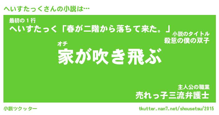 | 胡散臭い通販商品みたいなあだ名 | 『必ず成功する霊験あらたかなお札…その名も「へいすたっく」』 |