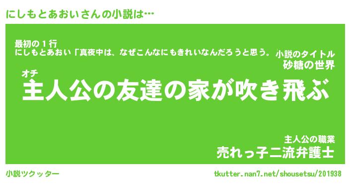 | 男性向けラノベタイトル風あだ名 | 『にしもとあおいの憂鬱』 |