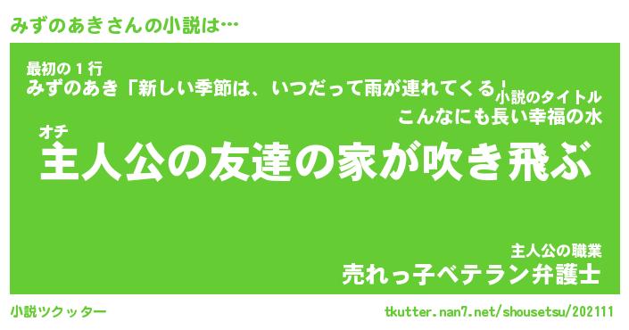 | 男性向けラノベタイトル風あだ名 | 『みずのあきの憂鬱』 |