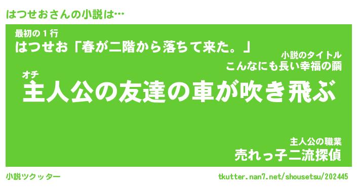 | 女子向けラノベタイトル風あだ名 | 『はつせお姫と円卓の騎士』 |