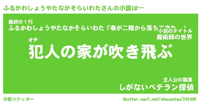 | ツイッター | ふるかわしょうやたなかそらいわたさんのツイッターID『namakemono_star』 |