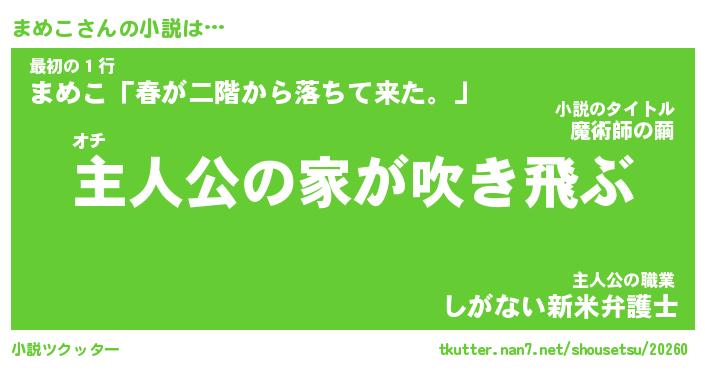 | 胡散臭い通販商品みたいなあだ名 | 『必ず成功する水晶球…その名も「まめこ」』 |