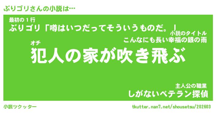 | 魚たちの銀の雨WW …「ケモノ」 | 10月27日 05:47 |