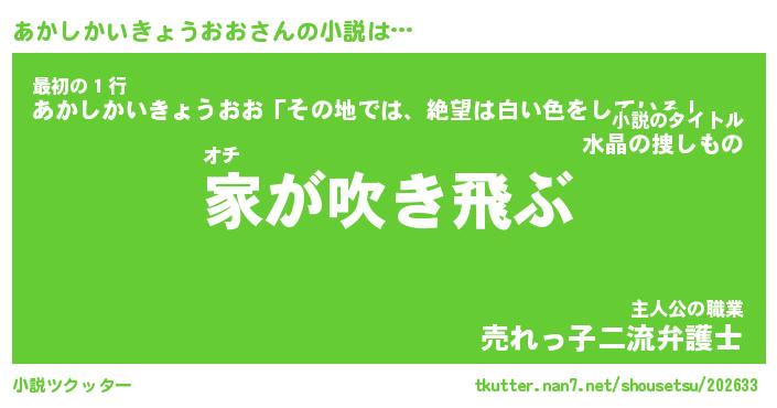 | 男性向けラノベタイトル風あだ名 | 『あかしかいきょうおおの憂鬱』 |