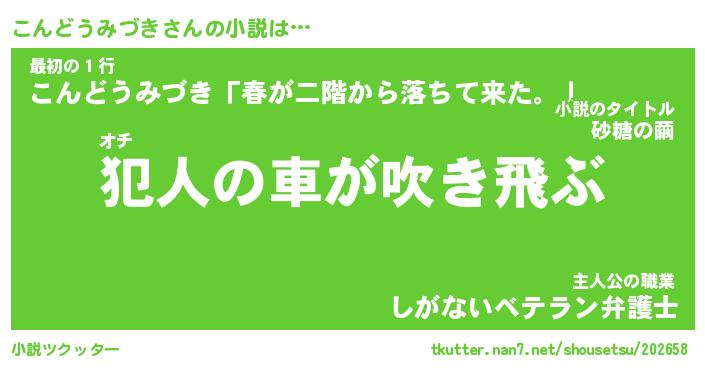 | 男性向けラノベタイトル風あだ名 | 『コンドウミヅキアートオンライン』 |