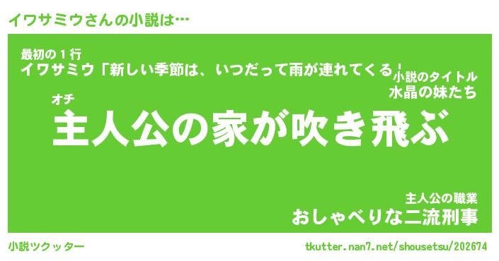 | 男性向けラノベタイトル風あだ名 | 『イワサミウの憂鬱』 |