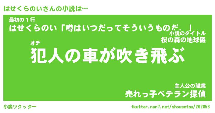 | 胡散臭い通販商品みたいなあだ名 | 『億万長者になれるブレスレット…その名も「はせくらのい」』 |