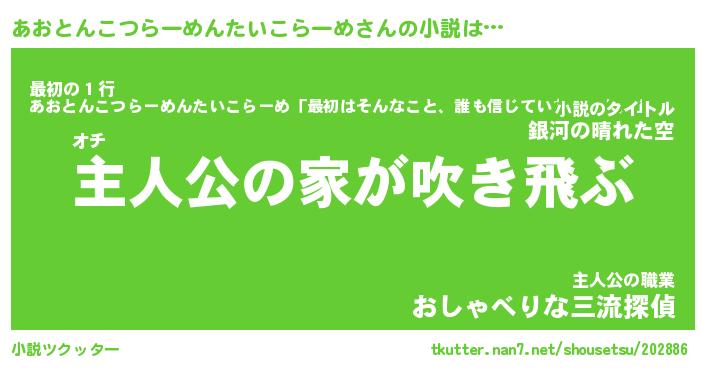 | 胡散臭い通販商品みたいなあだ名 | 『必ず成功するブレスレット…その名も「あおとんこつらーめんたいこらーめ」』 |