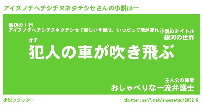 | 欧米人風あだ名 | 『マイケルアイヌノチヘチシチヌネタテシセ』 |