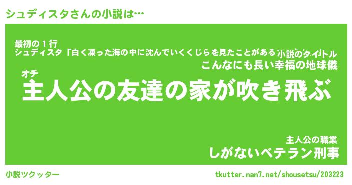 | 男性向けラノベタイトル風あだ名 | 『シュディスタの憂鬱』 |