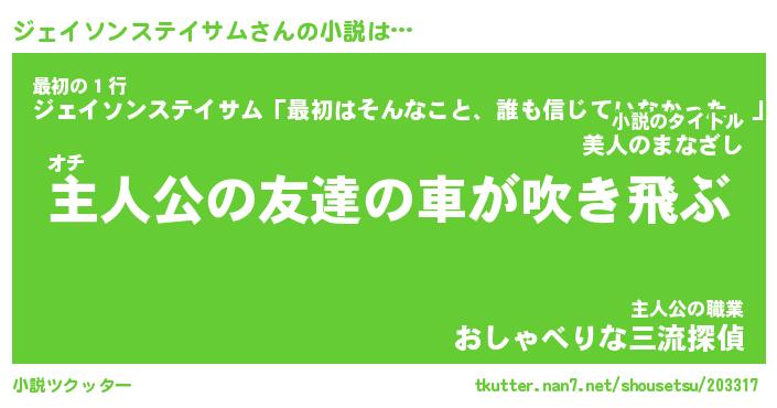 | 男性向けラノベタイトル風あだ名 | 『ジェイソンステイサムアートオンライン』 |