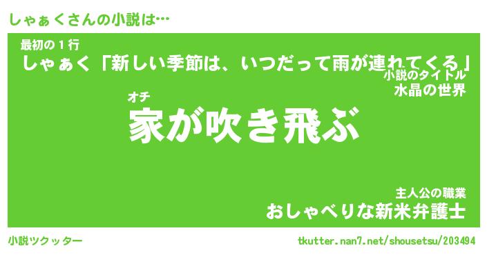 | 男性向けラノベタイトル風あだ名 | 『しゃぁくの憂鬱』 |