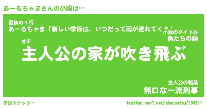 | 魚たちの銀の雨WW …「ケモノ」 | 10月27日 05:47 |