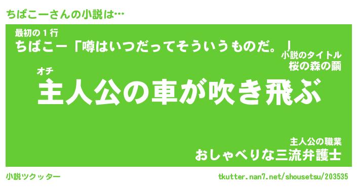 | 男性向けラノベタイトル風あだ名 | 『ちばこーの憂鬱』 |