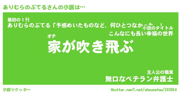 | 男性向けラノベタイトル風あだ名 | 『ありむらのぶてるの憂鬱』 |