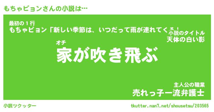 | 男性向けラノベタイトル風あだ名 | 『もちゃピョンの憂鬱』 |
