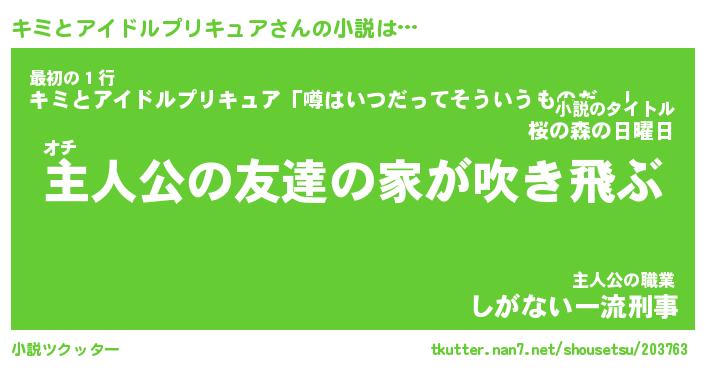 | 男性向けラノベタイトル風あだ名 | 『キミとアイドルプリキュアの憂鬱』 |