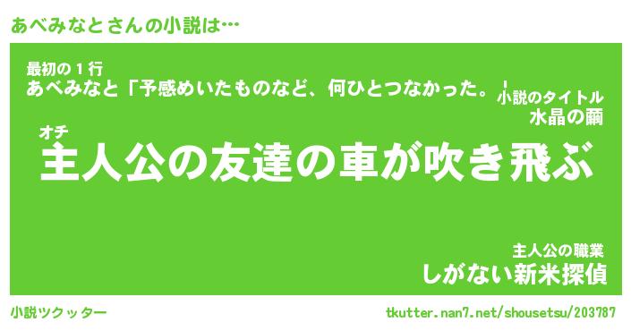 | 男性向けラノベタイトル風あだ名 | 『アベミナトアートオンライン』 |