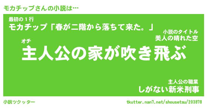 | 男性向けラノベタイトル風あだ名 | 『モカチップの憂鬱』 |