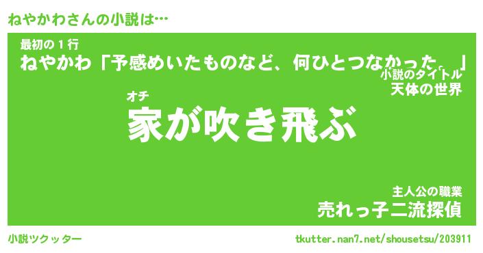 | 男性向けラノベタイトル風あだ名 | 『ねやかわの憂鬱』 |