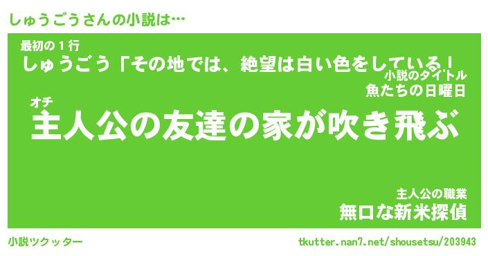 | 魚たちの銀の雨WW …「ケモノ」 | 10月27日 05:47 |