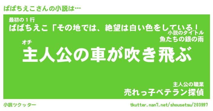 | 魚たちの銀の雨WW …「ケモノ」 | 10月27日 05:47 |