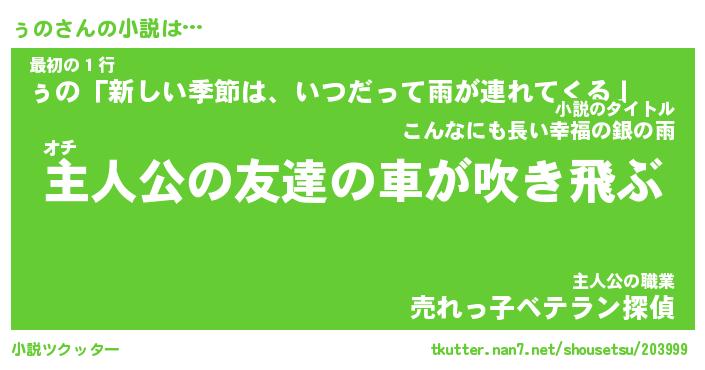| 魚たちの銀の雨WW …「ケモノ」 | 10月27日 05:47 |