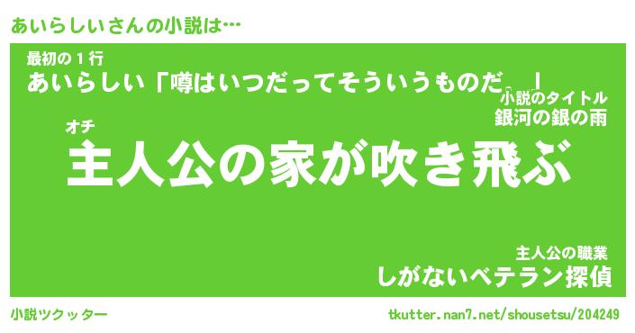 | 魚たちの銀の雨WW …「ケモノ」 | 10月27日 05:47 |