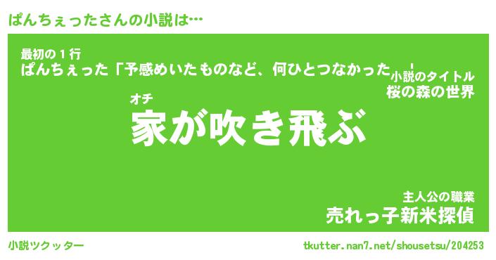| 男性向けラノベタイトル風あだ名 | 『ぱんちぇったの憂鬱』 |