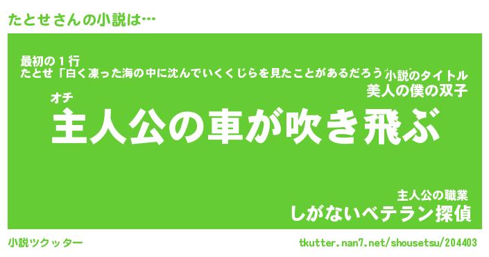 | 男性向けラノベタイトル風あだ名 | 『たとせの憂鬱』 |