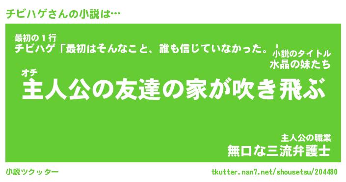 | 男性向けラノベタイトル風あだ名 | 『チビハゲの憂鬱』 |