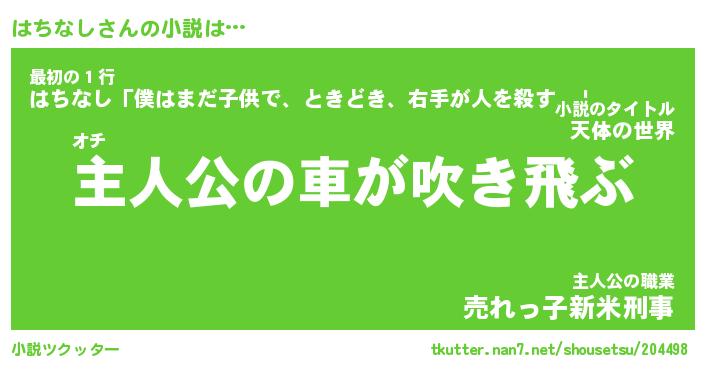 | 男性向けラノベタイトル風あだ名 | 『はちなしの憂鬱』 |